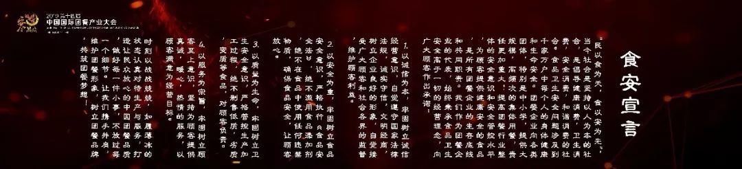 ?食品安全問題近年來受到了全社會的廣泛關注,保證食品安全是餐飲企業的底線和生命線。此次大會,劉延云董事長領讀了食安宣言,宣言內容如下: